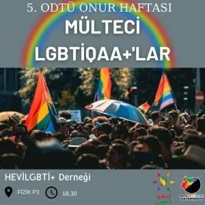 ODTÜ’ de gerçekleştirilen etkinliğin konusu “Mülteci LGBTİQAA+lar”dı. Mülteci LGBTİ+ların yaşadıkları sorunlar, alanda yaşanan ihlalller, sosyal haklara erişim ve LGBTİ+ hareketin Mülteci LGBTİ+lara yaklaşımı ele alındı. Etkinliğin” Nasıl dayanışmalı?” Tartışma kısmında ise Mülteci LGBTİ+larla nasıl bir dayanışma ağı kurulabileceğinden, daha önce yaşanan olumlu ve olumsuz deneyimlerden bahsedildi.