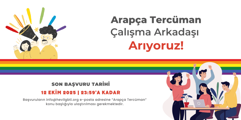 HEVİ LGBTİ+ Derneği, “Mülteci LGBTİ+ Programı” kapsamında yarı zamanlı istihdam için Arapça Tercüman çalışma arkadaşı arıyor.