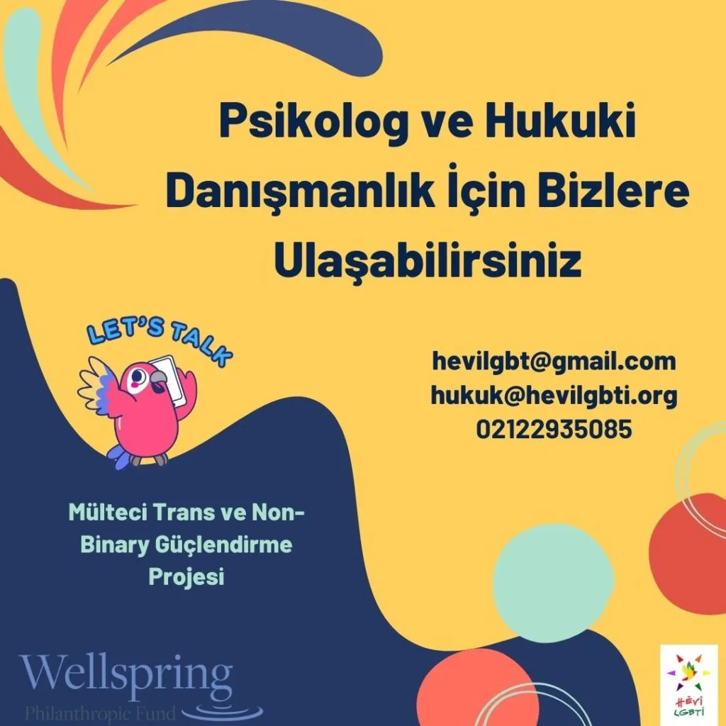 HEVİ LGBTİ+ Derneği olarak Wellspring Philanthropic Fund’ın desteğiyle hayata geçen “Mülteci Trans ve Non-Binary’leri güçlendirme Projesi” kapsamında HEVİ LGBTİ+ Derneği hukuki ve psikolojik destek vermeye başlamıştır.