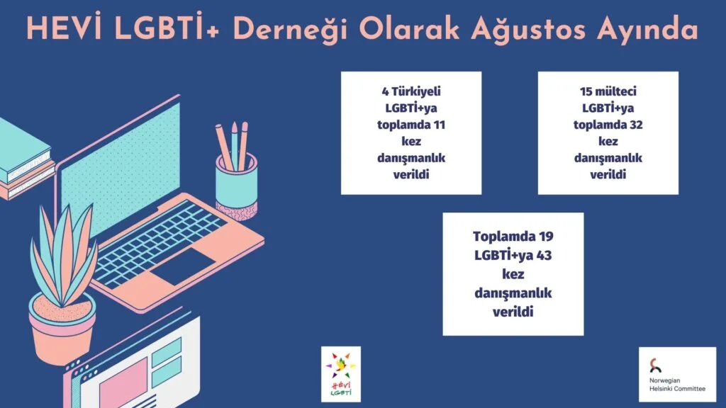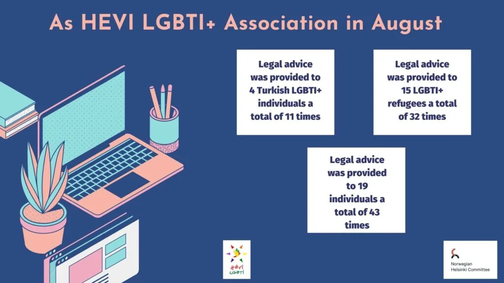 HEVİ LGBTİ+ Derneği olarak derneğimize Ağustos 2021 yılında toplamda 19 kişi danışmanlık için başvuruda bulundu